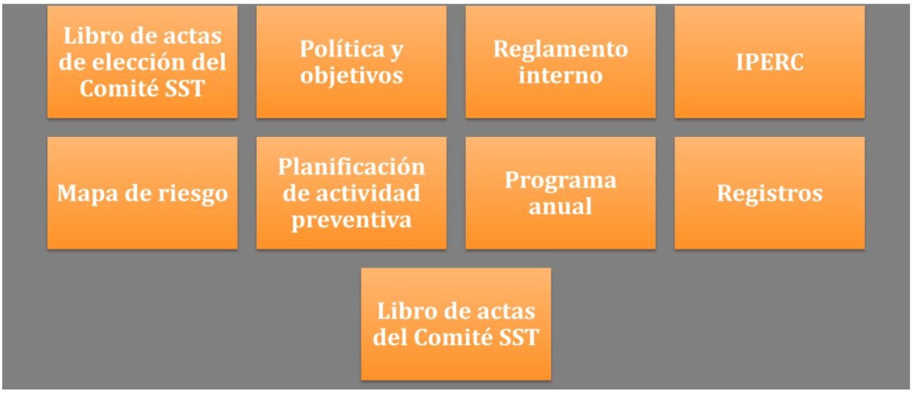 Existen otros documentos y requisitos que contempla el SGSST, los cuales también deben elaborarse, como el Reglamento Interno de Seguridad y Salud en el Trabajo (RISST), los registros y el plan anual de SST, entre otros.
