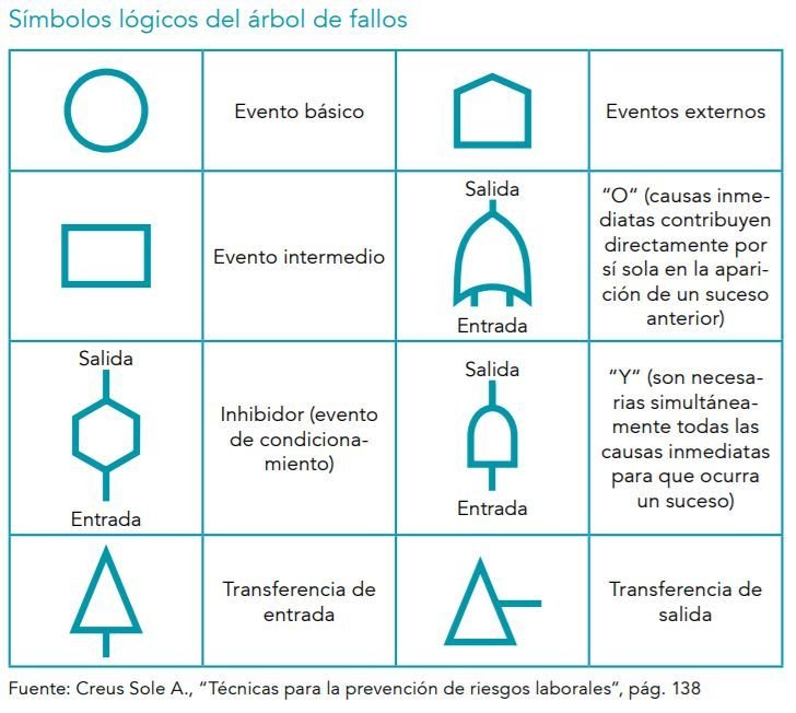 Representación gráfica deductiva que va desde el evento principal o suceso final no deseado o peligroso, denominado “top event”, pasando por las combinaciones de eventos o sucesos intermedios, hasta llegar a sus causas o eventos básicos, que representan el límite de resolución del árbol.